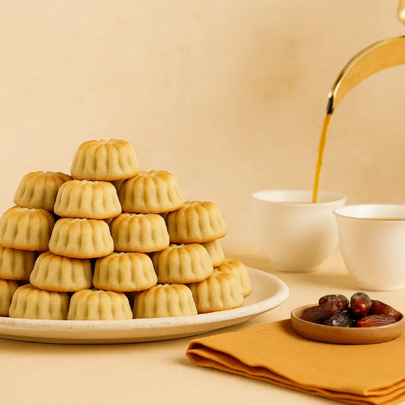 استمتع بمعمول التمر الفاخر والفستق الحلبي اللذيذ والطري. خيار مثالي لوجبة خفيفة مغذية ولذيذة.