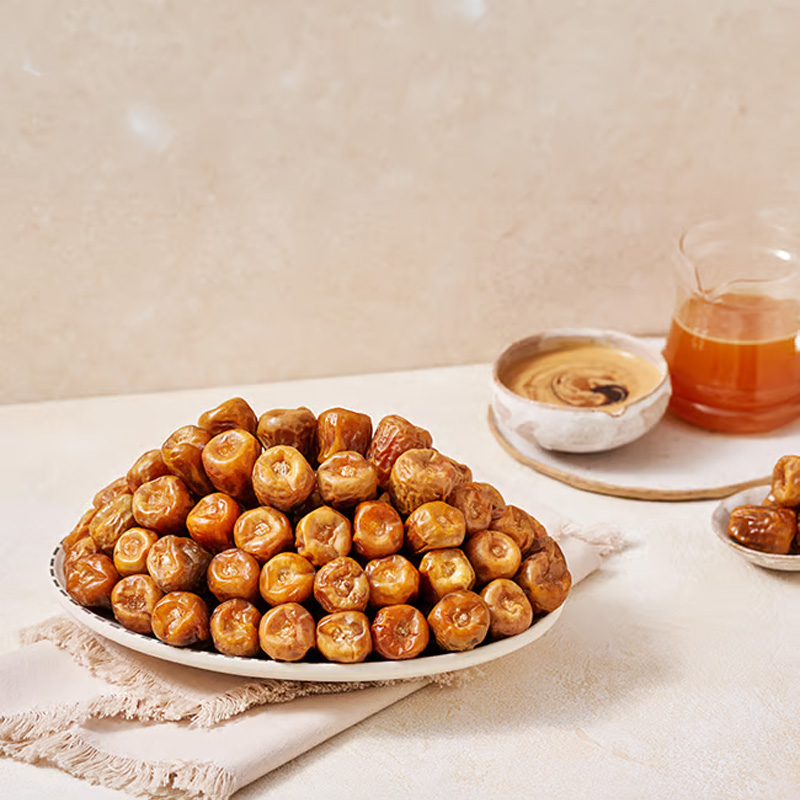 تمر السكري المفتل، التي یتم الحصول علیھا من منطقة القصیم في المملكة العربیة السعودیة، یتم اختیارھا بعنایة من مزارع القصیم الفاخرة وتخضع لعدة مراحل فرز لضمان أعلى جودة. تقدم ھذه التمور حلاوة لذیذة مع لونھا الذھبي وملمسھا .المقرمش