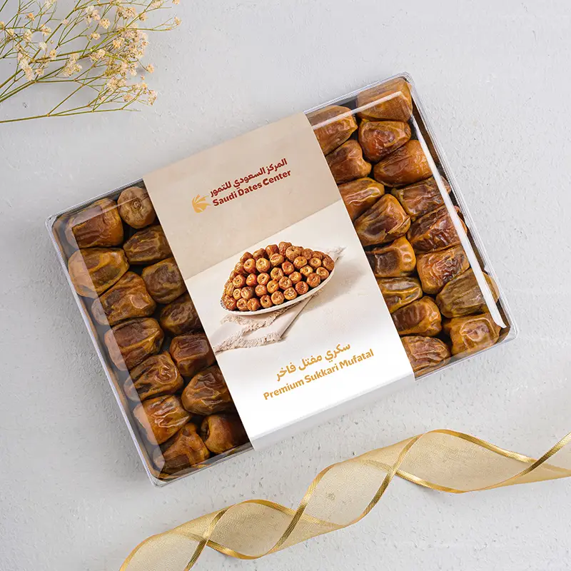 تمور سكري مفتل مختارة بعناية، بقوام ناعم ومذاق حلو طبيعي. مغلّفة داخل صندوق أكريليك شفاف يبرز جمال التمر و يعكس فخامة التقديم.