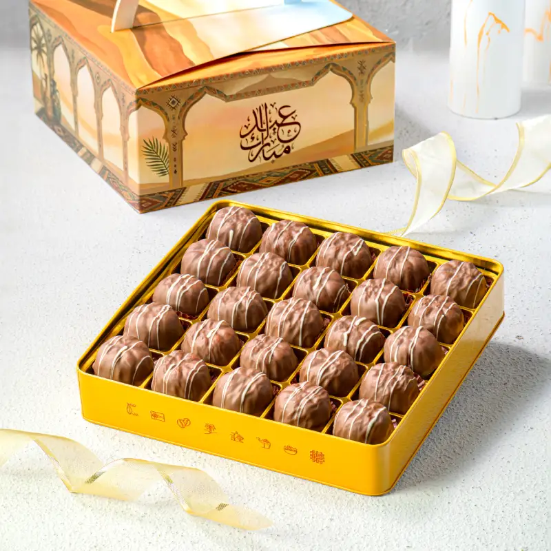 Chocolate-coated date maamoul blends the richness of premium dates with a smooth layer of chocolate, creating a perfectly balanced and indulgent tasting experience.