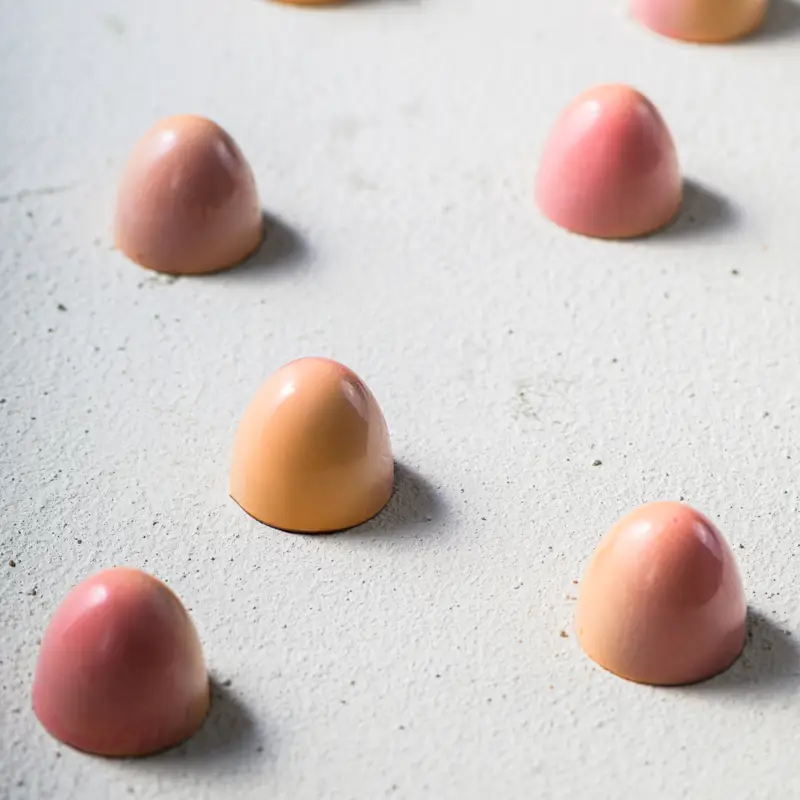 Strawberry Cheesecake, smooth milk chocolate infused with strawberry richness and creamy notes, a taste that speaks elegance in every bite.
